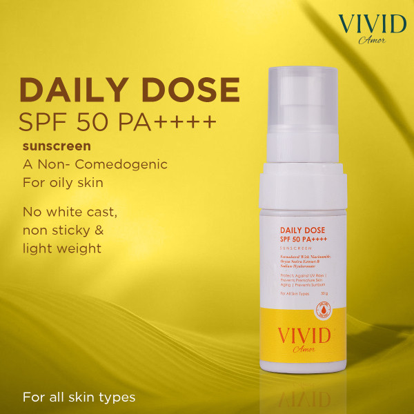 Daily Dose SPF is an amazing SPF 50 PA++++ sunscreen. It is a lightweight, non-greasy sunscreen designed for all skin types. This sunscreen is enriched with hyaluronic acid, which hydrates while shielding your skin from harmful UVA and UVB rays. The non-comedogenic formula glides on smoothly without leaving a white cast and clogging pores, making it perfect for daily wear, even under makeup. With consistent use, your skin stays protected, nourished, and naturally radiant.